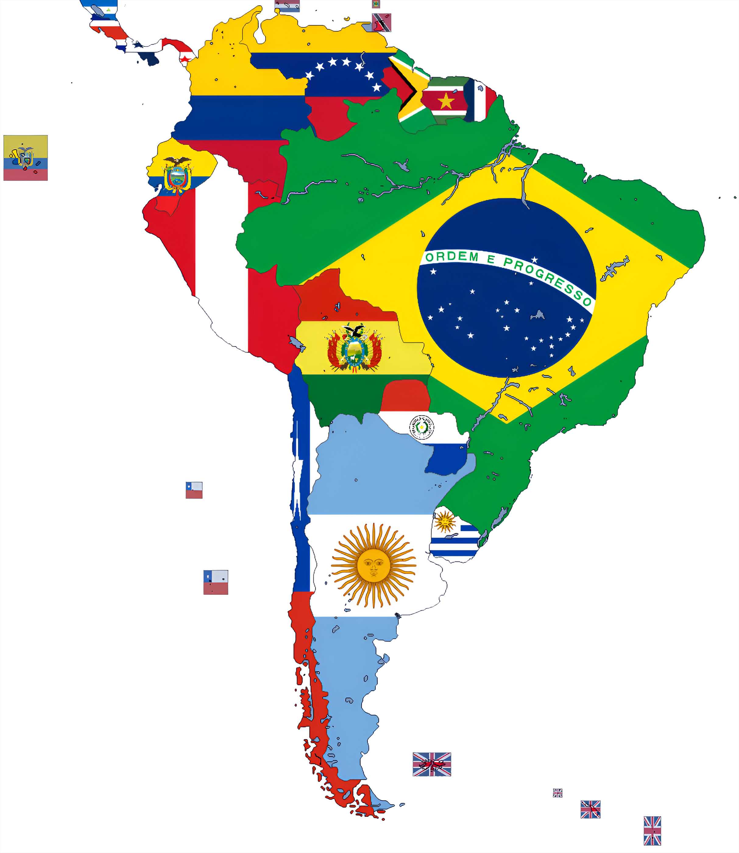 An overview of the countries and territories of South America, showcasing their borders and governance.