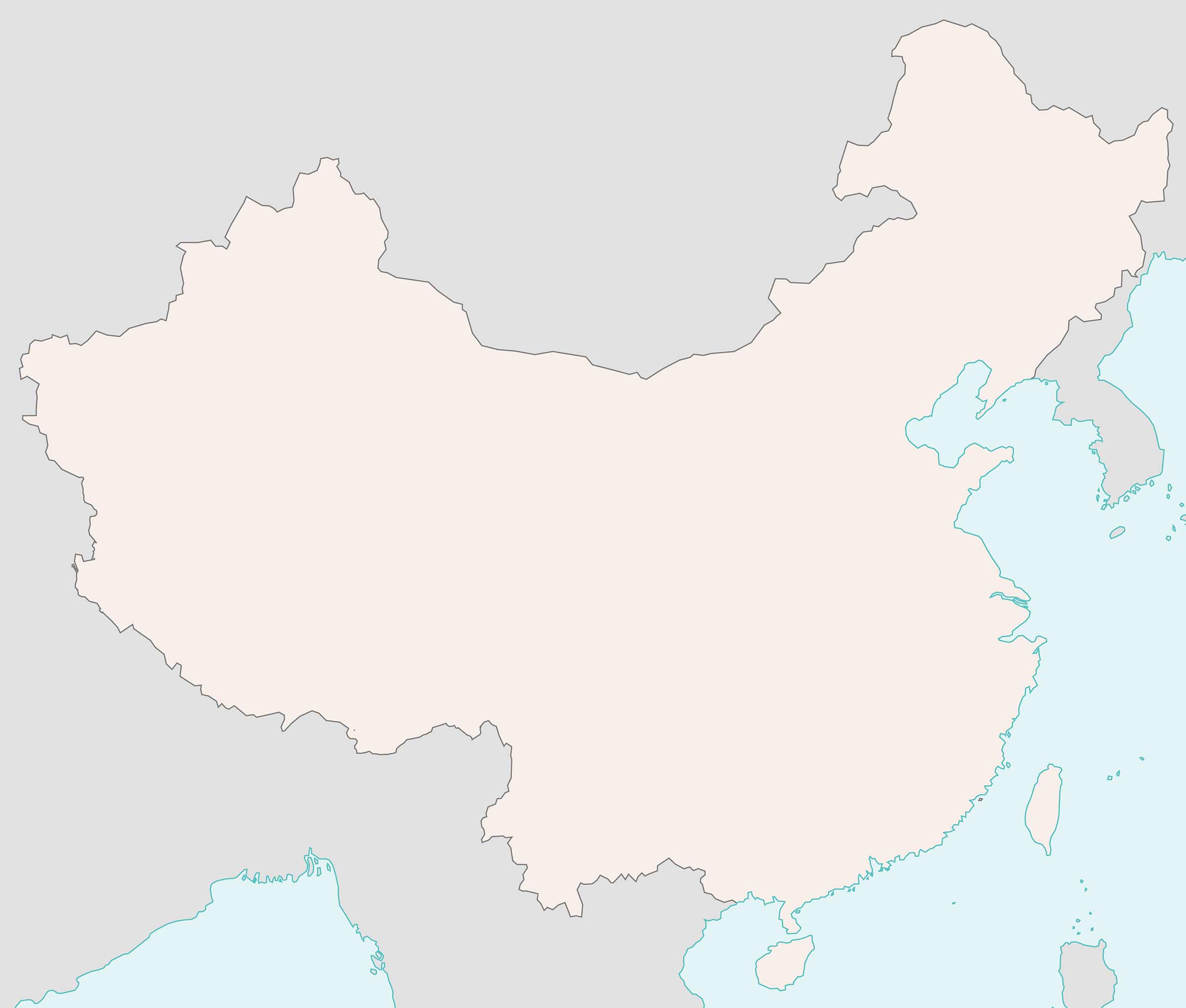 A blank map of China serves as a template for educational purposes or for creating customized maps.