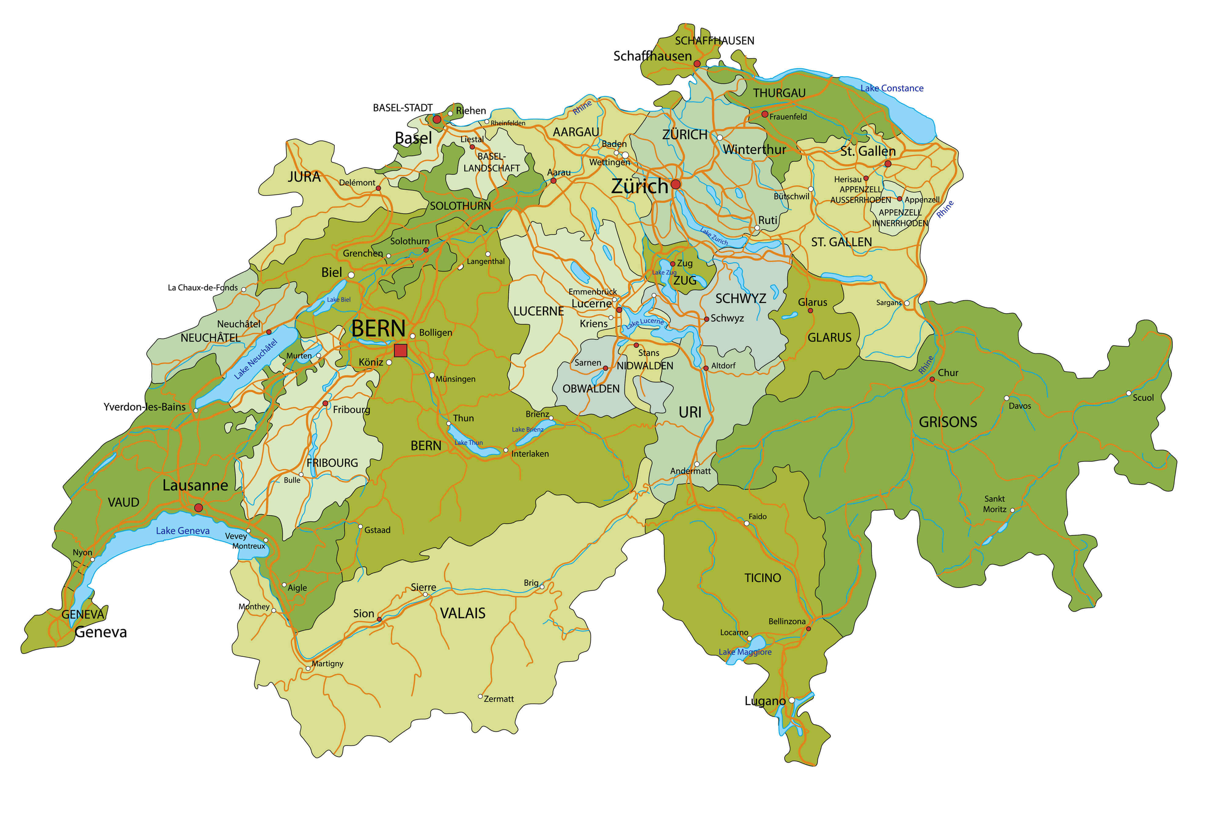 Switzerland Main Cities Map