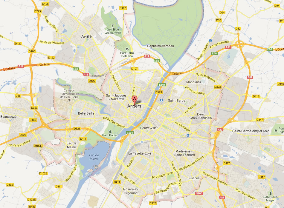 Navigate Angers map, Angers country map, satellite images of Angers, Angers largest cities, towns maps, political map of Angers, driving directions, physical, atlas and traffic maps in France.