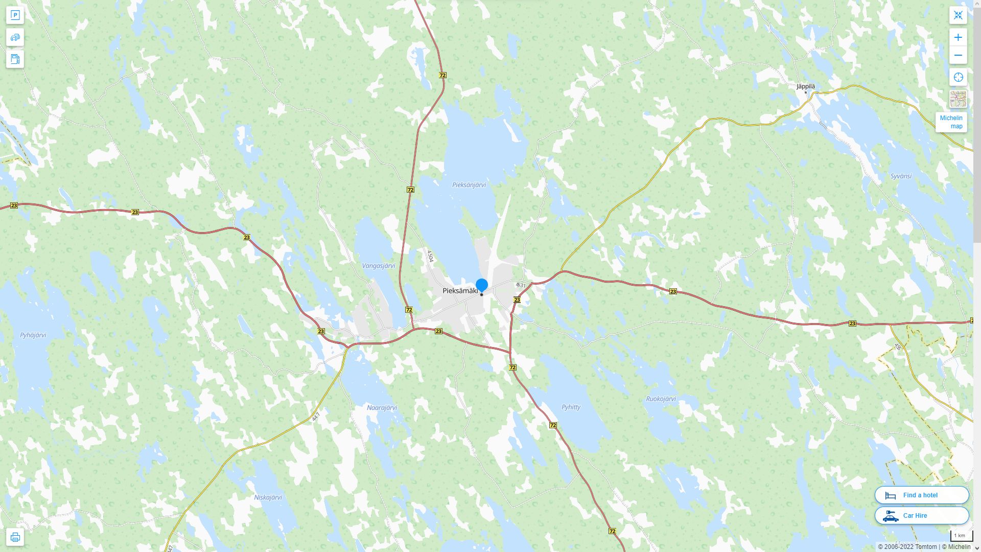 Navigate Pieksamaki Map, Pieksamaki city map, satellite images of Pieksamaki, Pieksamaki towns map, political map of Pieksamaki, driving directions and traffic maps.