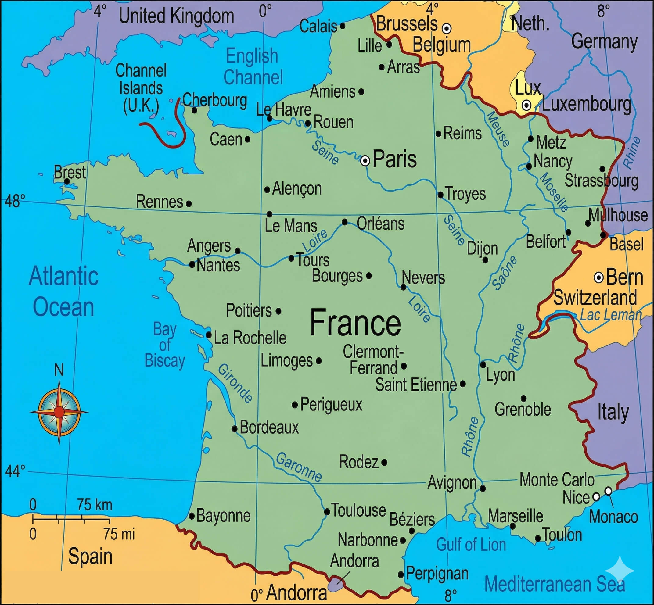 istanbul-city-guide.com offers a collection of France map, google map, France atlas, political, physical, satellite view, country infos, cities map and more map of France.