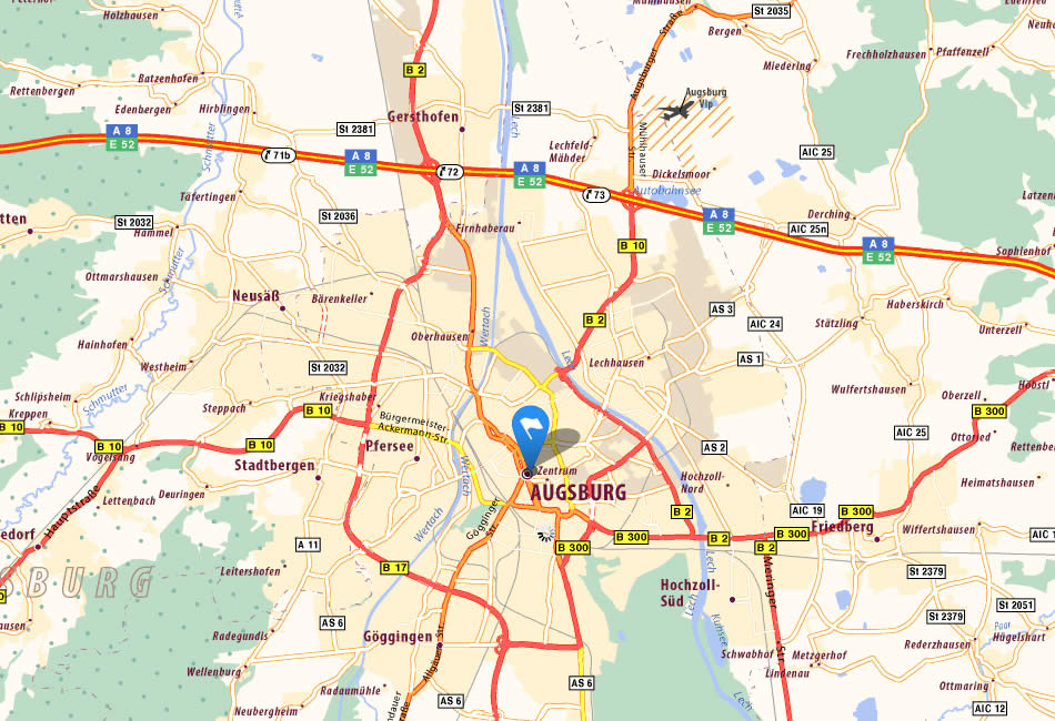 Navigate Augsburg Map, Augsburg city map, satellite images of Augsburg, Augsburg towns map, political map of Augsburg, driving directions and traffic maps.