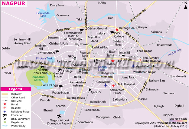 Navigate Nagpur Map, Nagpur city map, satellite images of Nagpur, Nagpur towns map, political map of Nagpur, driving directions and traffic maps.