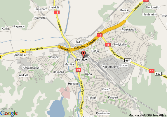 Navigate Seinajoki map, Seinajoki country map, satellite images of Seinajoki, Seinajoki largest cities, towns maps, political map of Seinajoki, driving directions, physical, atlas and traffic maps in Finland.