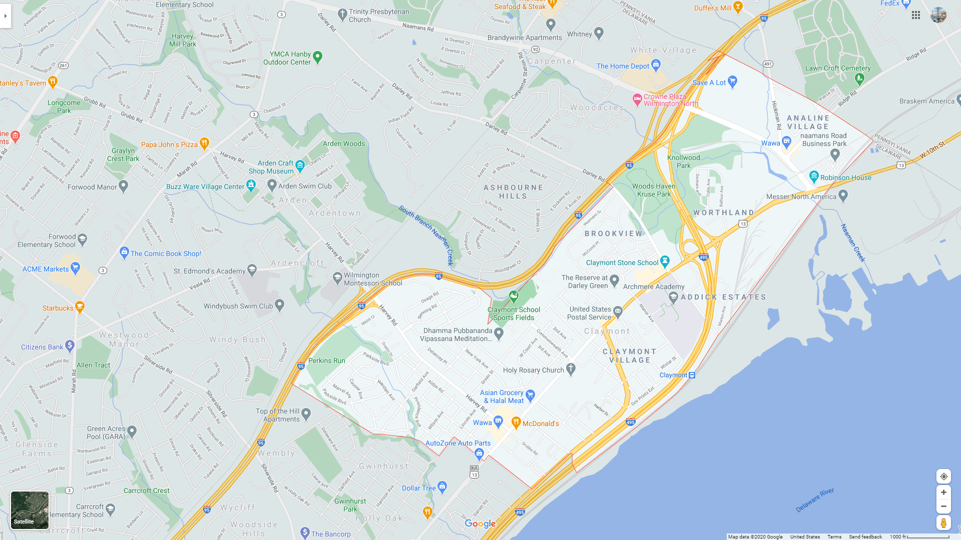 Navigate Claymont, Delaware Map, map of Claymont, Claymont Delaware regions map, Claymont satellite image, towns map, road map of Claymont.