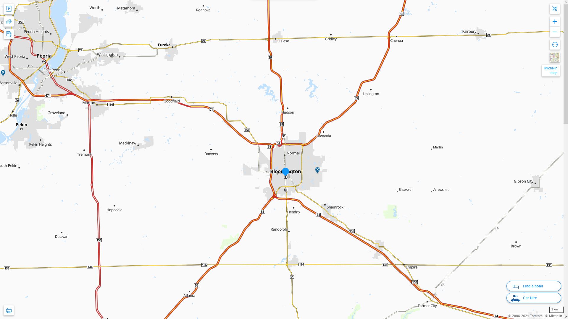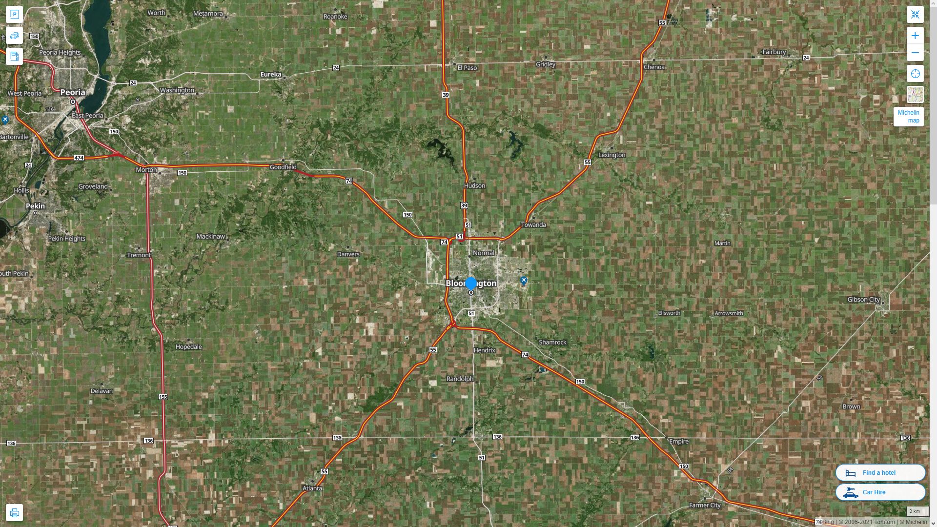 Navigate Bloomington, Illinois Map, map of Bloomington, Bloomington illinois regions map, Bloomington satellite image, towns map, road map of Bloomington.