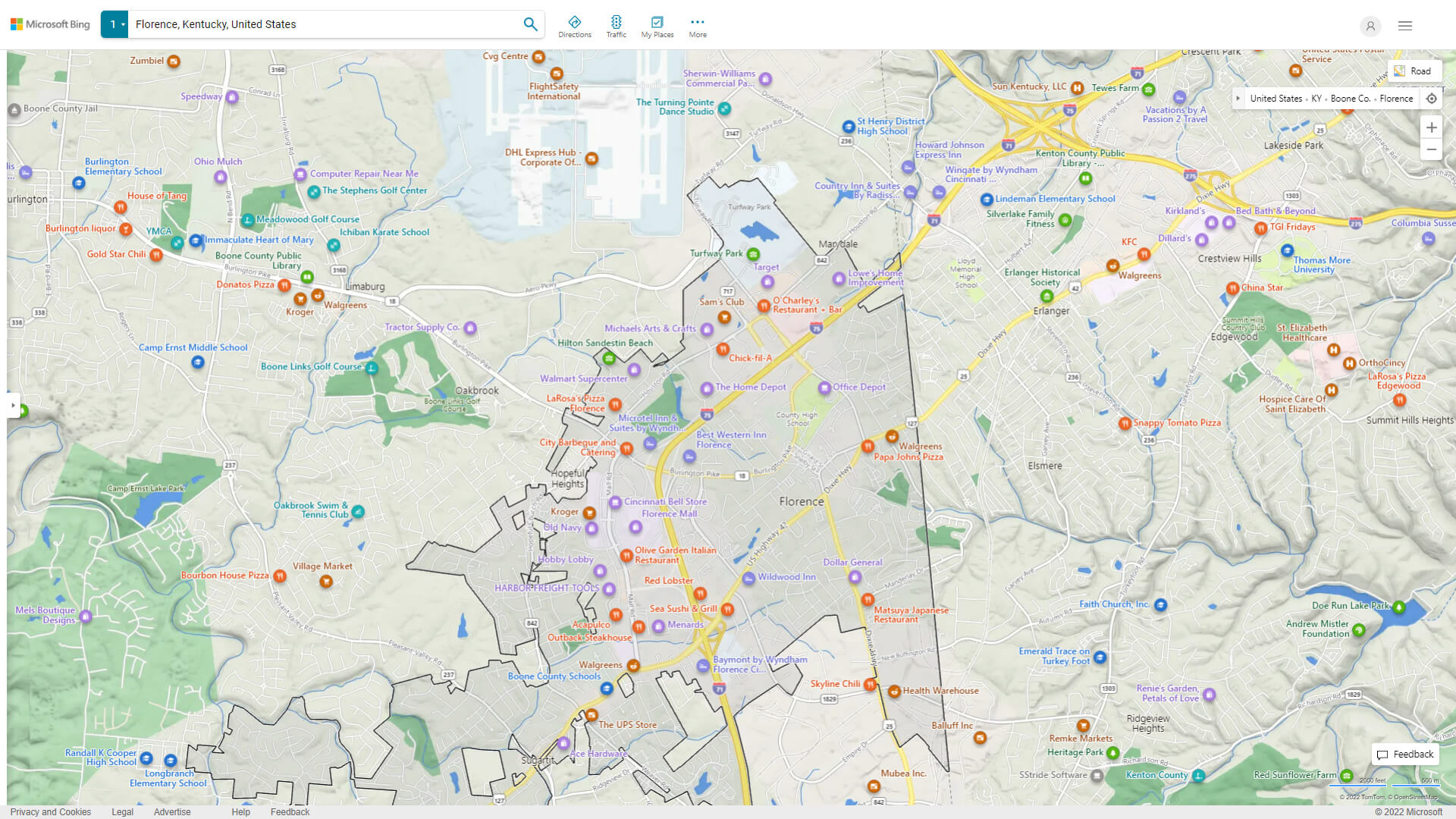 Navigate Florence, Kentucky Map, map of Florence, Florence Kentucky regions map, Florence satellite image, towns map, road map of Florence.
