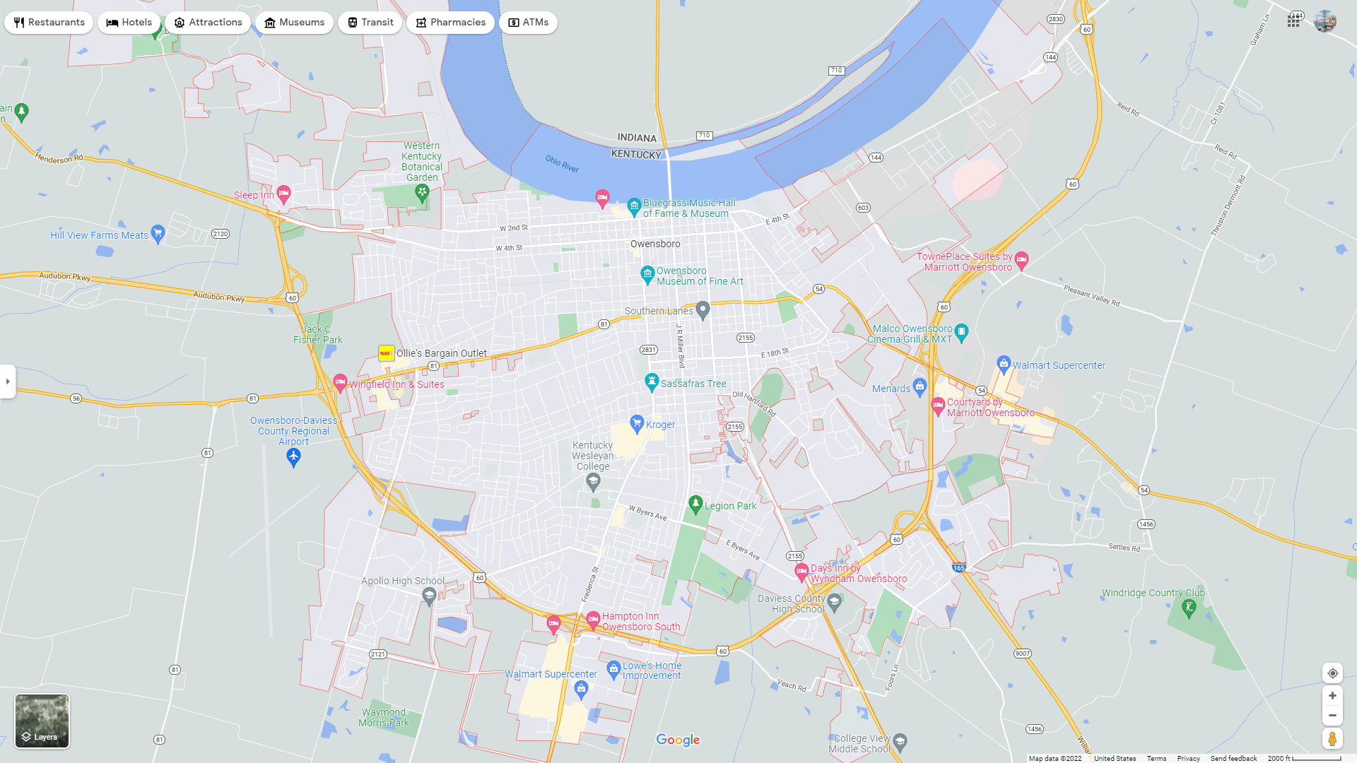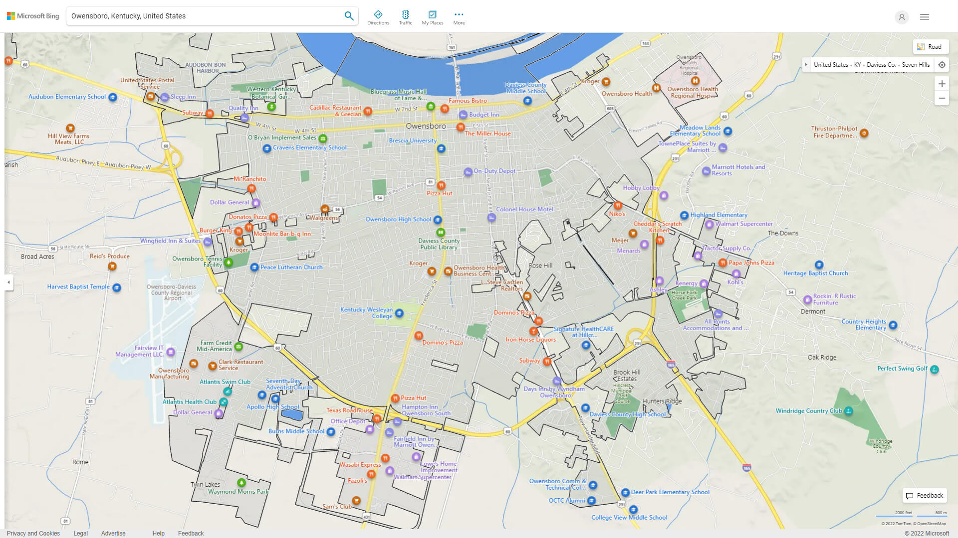 Navigate Owensboro, Kentucky Map, map of Owensboro, Owensboro Kentucky regions map, Owensboro satellite image, towns map, road map of Owensboro.