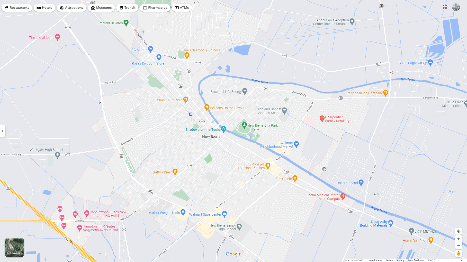 Navigate New Iberia, Louisiana Map, map of New Iberia, New iberia Louisiana regions map, New Iberia satellite image, towns map, road map of New Iberia.