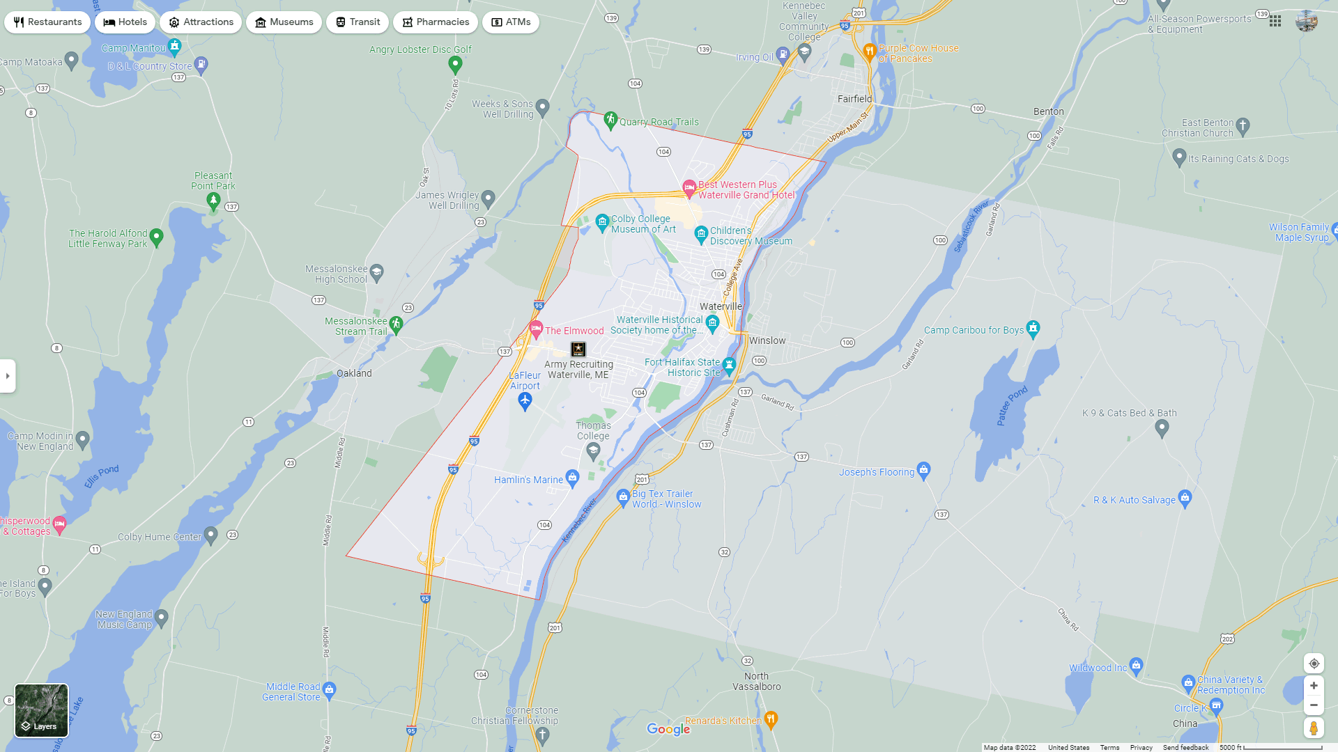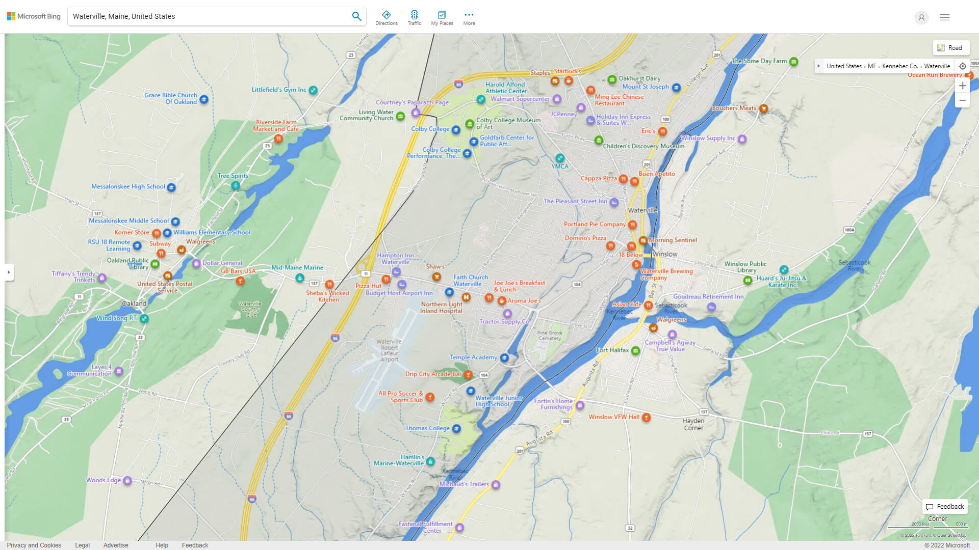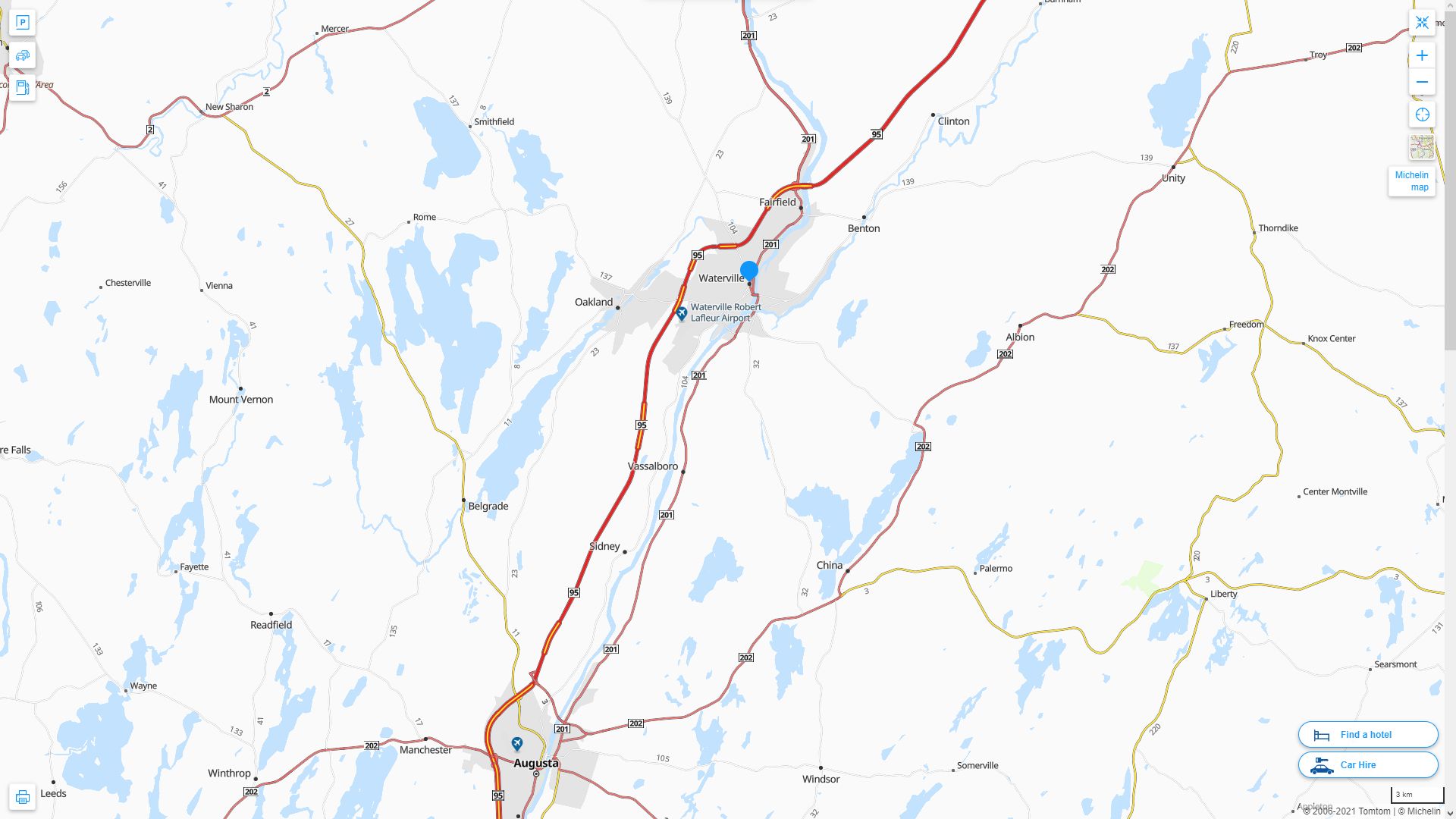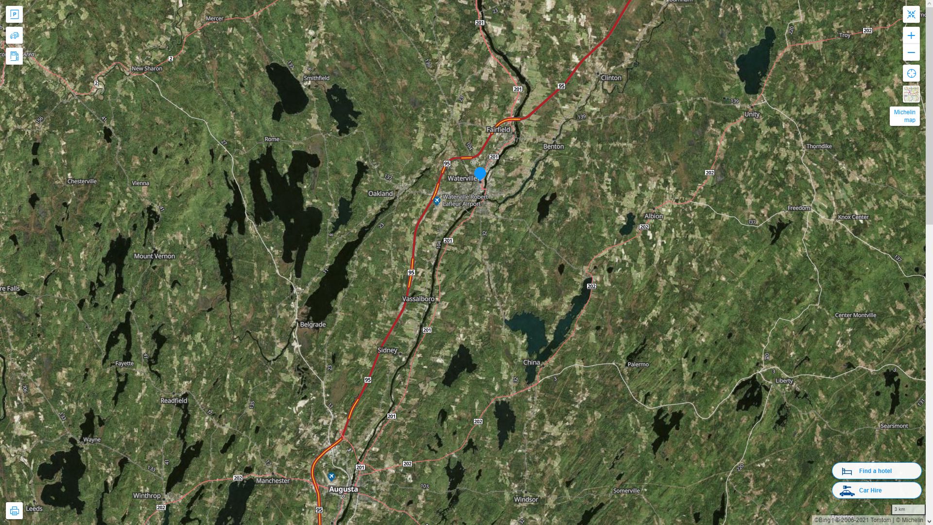 Navigate Waterville, Maine Map, map of Waterville, Waterville Maine regions map, Waterville satellite image, towns map, road map of Waterville.