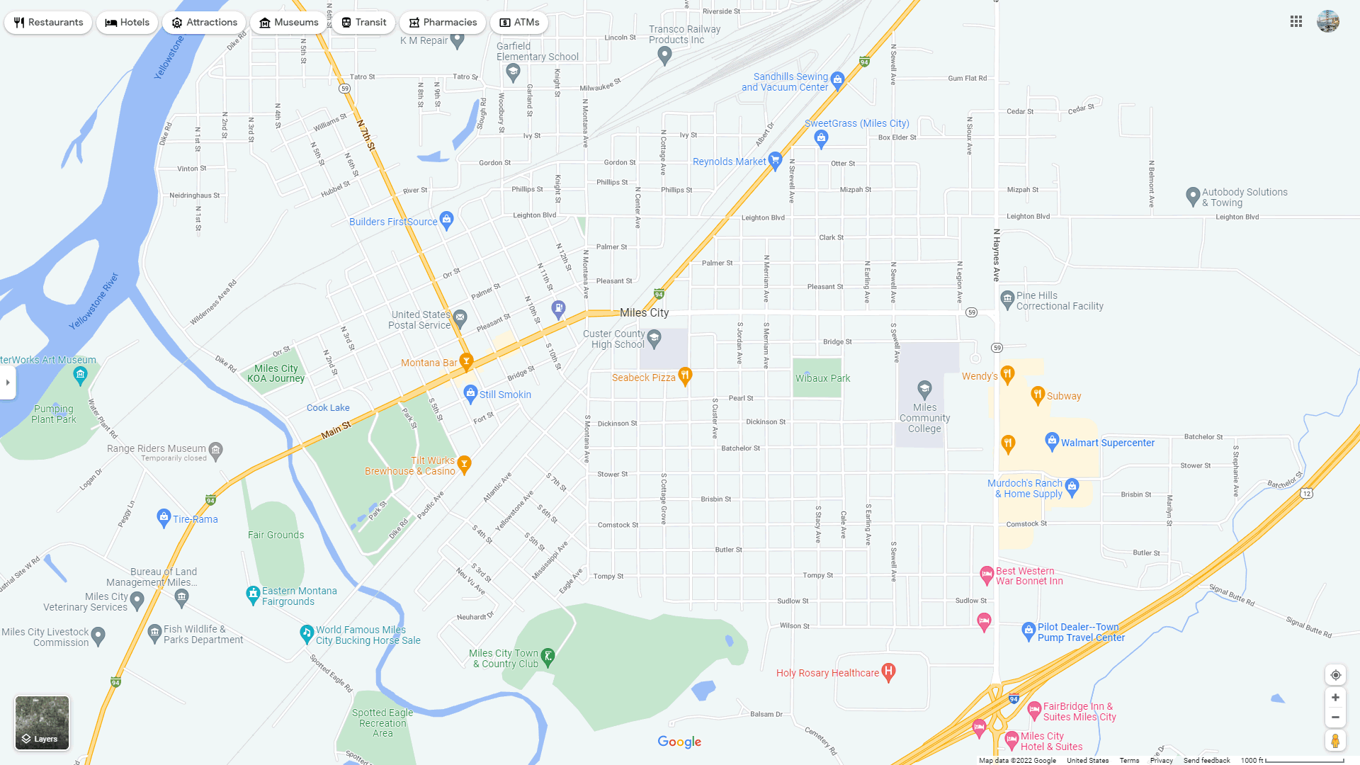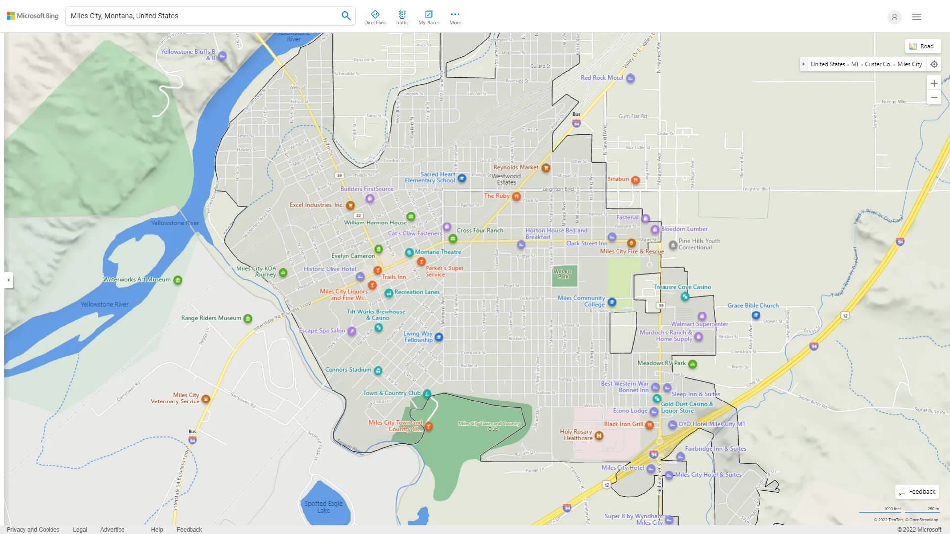 Navigate Miles City, Montana Map, map of Miles City, Miles City Montana regions map, Miles City satellite image, towns map, road map of Miles City.