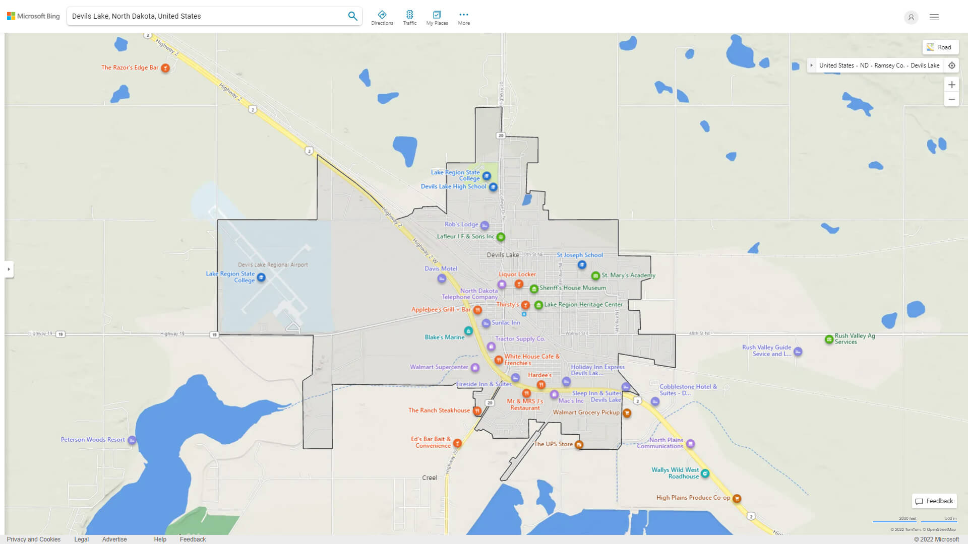 Navigate Devils Lake, North Dakota Map, map of Devils Lake, Devils Lake North Dakota regions map, Devils Lake satellite image, towns map, road map of Devils Lake.