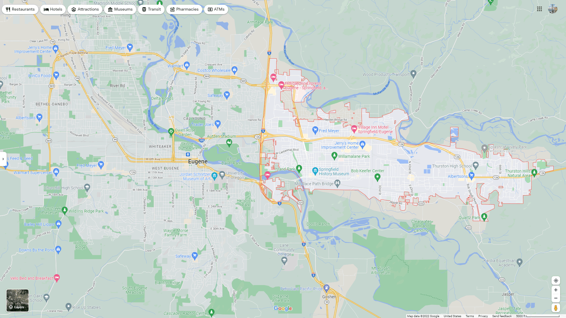 Navigate Springfield, Oregon Map, map of Springfield, Springfield Oregon regions map, Springfield satellite image, towns map, road map of Springfield.