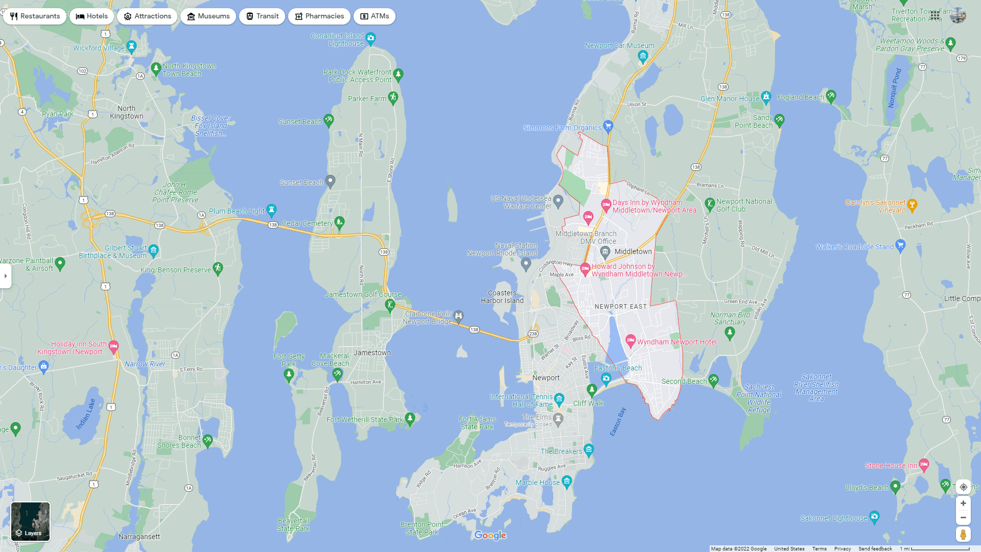 Navigate Newport East, Rhode Island Map, map of Newport East, Newport East Rhode Island regions map, Newport East satellite image, towns map, road map of Newport East.