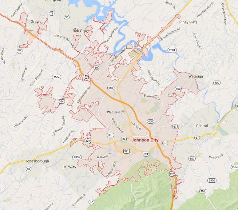 Navigate Johnson City, Tennessee Map, map of Johnson City, Johnson City Tennessee regions map, Johnson City satellite image, towns map, road map of Johnson City.