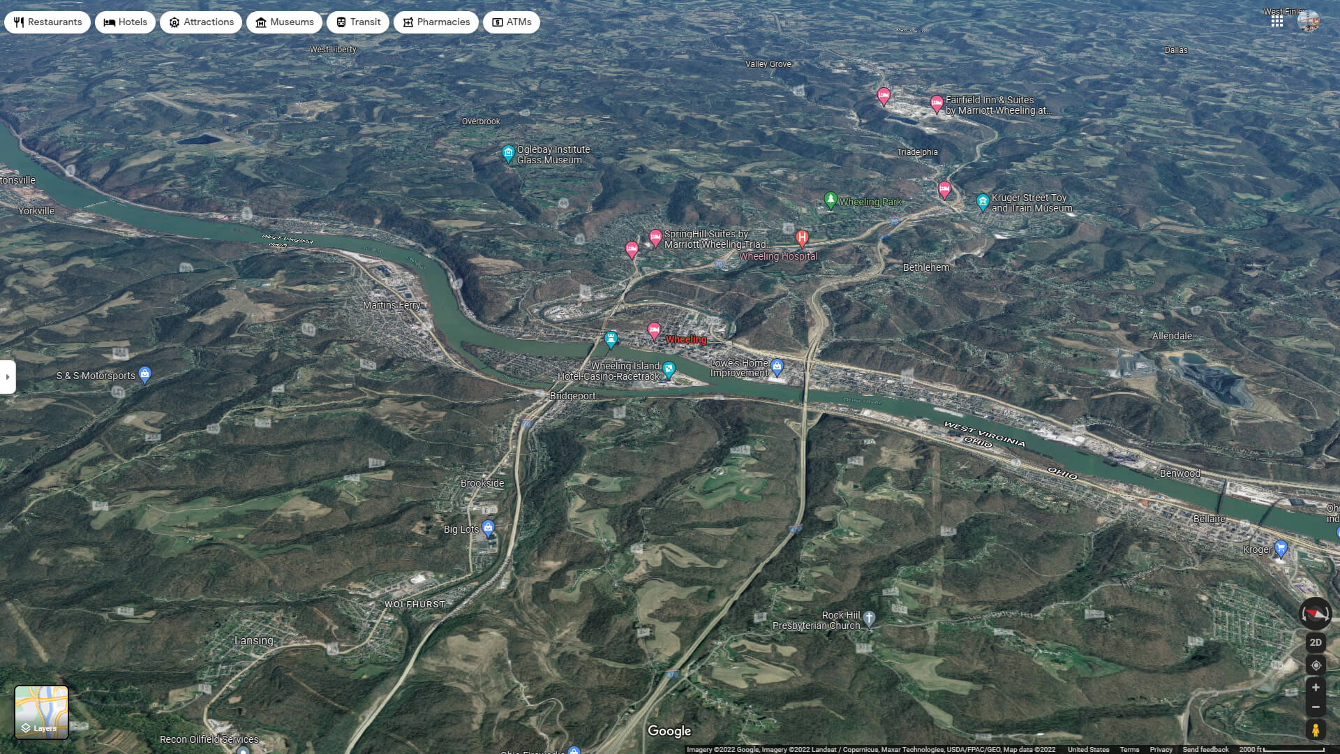 Navigate Wheeling, West Virginia Map, map of Wheeling, Wheeling West Virginia regions map, Wheeling satellite image, towns map, road map of Wheeling.