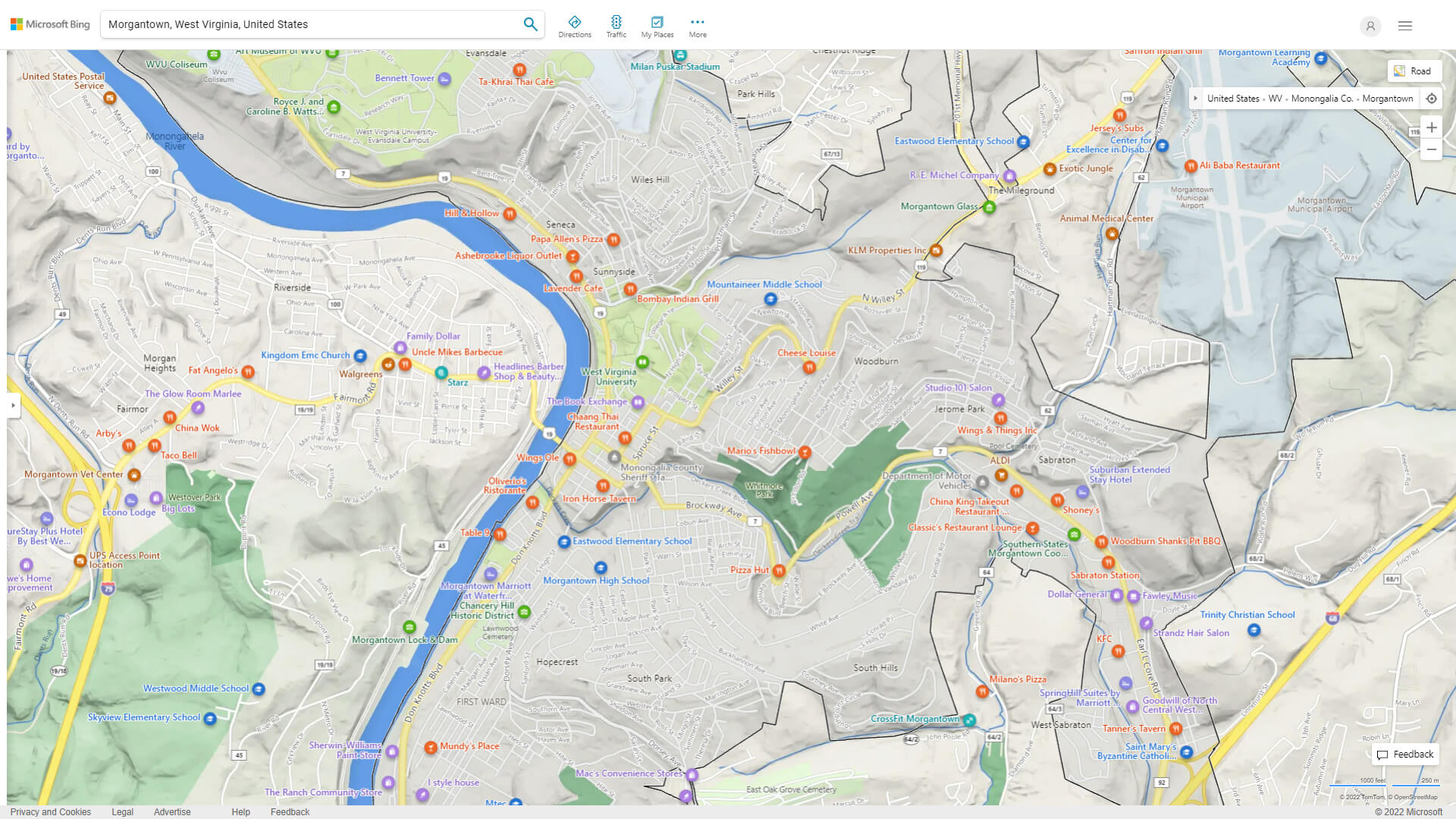 Navigate Morgantown, West Virginia Map, map of Morgantown, Morgantown West Virginia regions map, Morgantown satellite image, towns map, road map of Morgantown.
