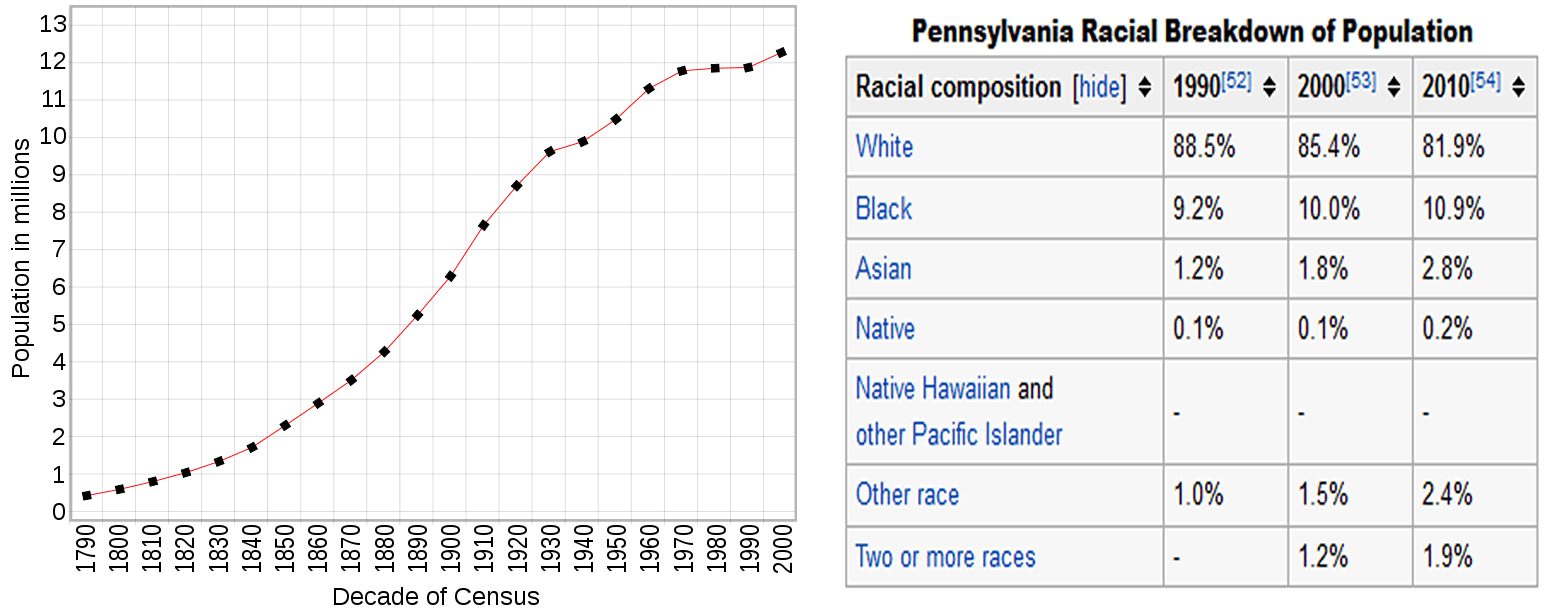Pennsylvania is 170 miles (274 km) north to south and 283 miles (455 km) east to west. Of a total 46,055 square miles (119,282 km2), 44,817 square miles (116,075 km2) are land, 490 square miles (1,269 km2) are inland waters, and 749 square miles (1,940 km2) are waters in Lake Erie. It is the 33rd largest state in the United States. Pennsylvania has 51 miles (82 km) of coastline along Lake Erie and 57 miles (92 km) of shoreline along the Delaware Estuary.