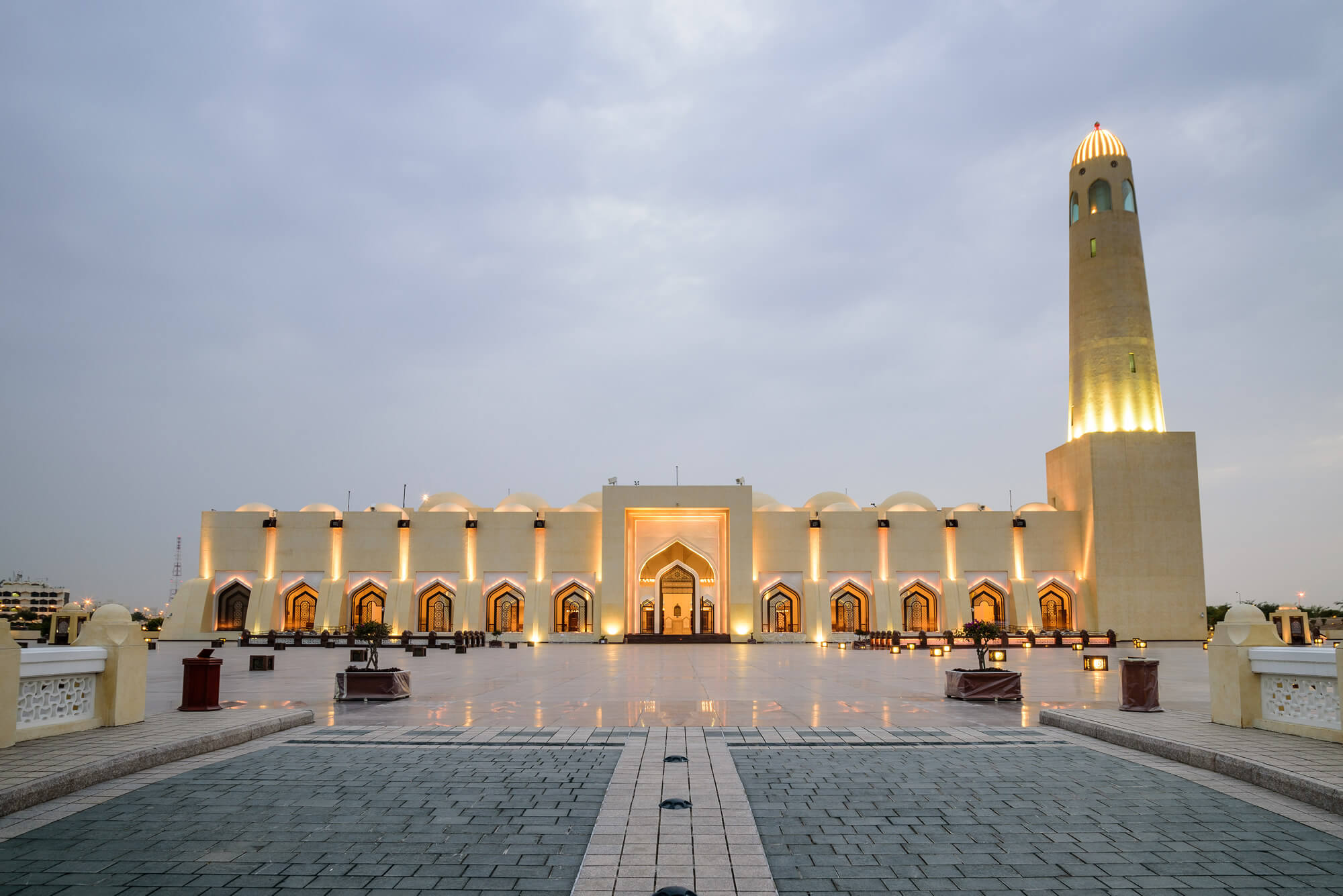 DOHA, QATAR - MARCH 29: The State Mosque of Qatar on March 29, 2017 in Doha, Qatar. Sheikh Muhammad Ibn Abdul Wahhab Mosque, also known as The Grand Mosque.